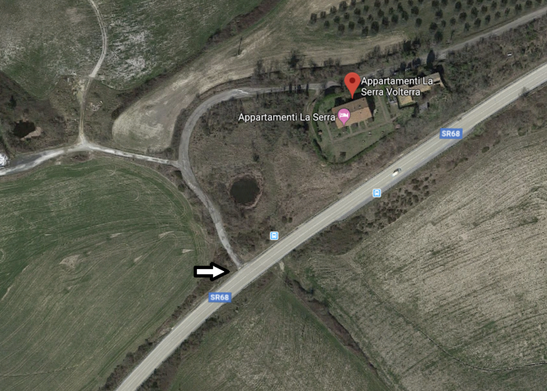 Arrivati a Volterra proseguire in direzione Colle Val D’Elsa attraverso la statale n. 68. Superato il bivio per il paese Mazzola proseguire ancora sulla statale per 3,8 KM (circa 4 minuti di tempo). In prossimità del KM 47 (subito dopo aver superato la strada per la località Ariano) trovate sulla vostra sinistra (percorrendo la strada in direzione Colle Val D’elsa), prima del muro, l’immissione della piccola strada privata che porta al podere La Serra in Località Spicchiaiola. Lasciata la provinciale si dovrà percorrere circa 200 metri per arrivare al parcheggio sul retro del Casolare La Serra.